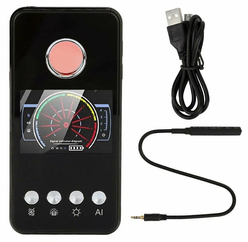 Защита от беспроводных передатчиков любого типа — компактный детектор жучков позволяет найти любое устройство, работающее в частотном диапазоне от 1 МГц до 8 ГГц. Это могут быть любые беспроводные передатчики, использующие частоты сотовой связи GSM, 3G, 4G, а также каналы связи Bluetooth и Wi-Fi. С помощью данного прибора вы найдете скрытые микрофоны и диктофоны, сотовые телефоны, жучки и радиопередатчики. Кроме того, устройство комплектуется съемным магнитным щупом, с помощью которого можно обследовать автомобиль на наличие прикрепленных к нему GPS-трекеров на магнитном основании.
