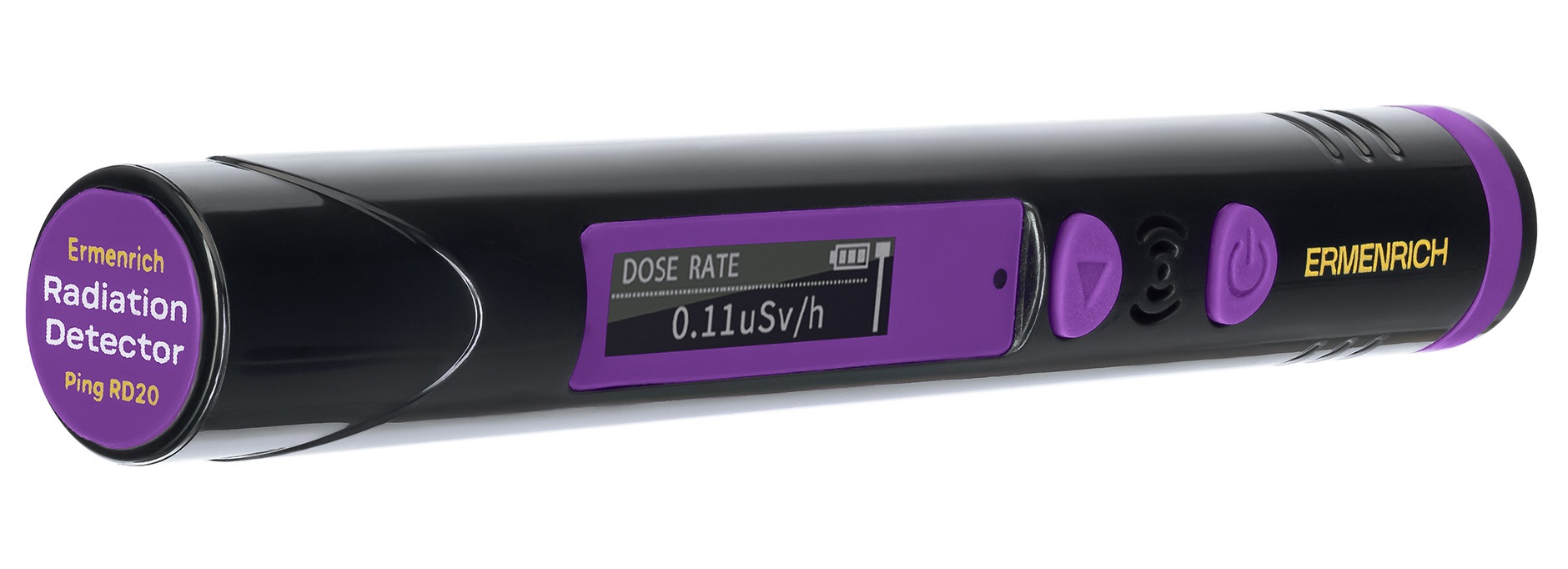 Легкий корпус с защитой IP3X — дозиметр "Ermenrich Ping RD20" изготовлен в компактном корпусе из пластика и имеет цилиндрическую форму. По внешнему виду он напоминает маркер, который удобно носить в кармане (для этого на корпусе имеется специальная клипса). Прибор является бытовым, пользоваться им может каждый, для этого не требуются специальные знания в области радиобиологии. Он измеряет текущий уровень радиации у различных объектов, а также помогает найти радиоактивные пятна на земле и в окружающей среде.