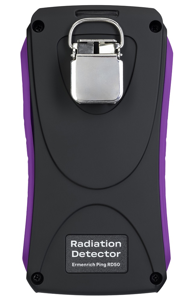 Сигнализирует звуком и светом о высоком уровне радиации — при обнаружении опасного уровня радиации дозиметр "Ermenrich Ping RD50" оповещает об этом с помощью световой и звуковой сигнализации. На корпусе прибора имеется светодиод, который светит непрерывно в режиме измерения и начинает мерцать при фиксации высокого уровня радиации. При этом из встроенного динамика раздается звуковой сигнал тревоги. Порог срабатывания тревожной сигнализации можно настроить (для текущей мощности дозы и для суммарной).