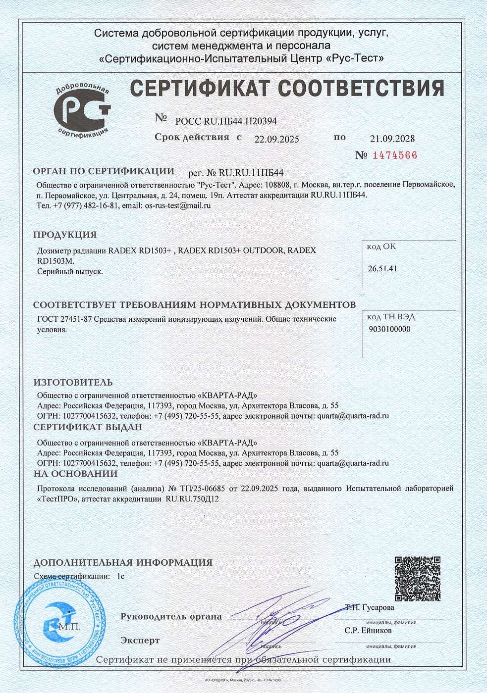 Защитите себя и свою семью от опасного радиационного излучения с новым портативным дозиметром "RADEX RD1503M"