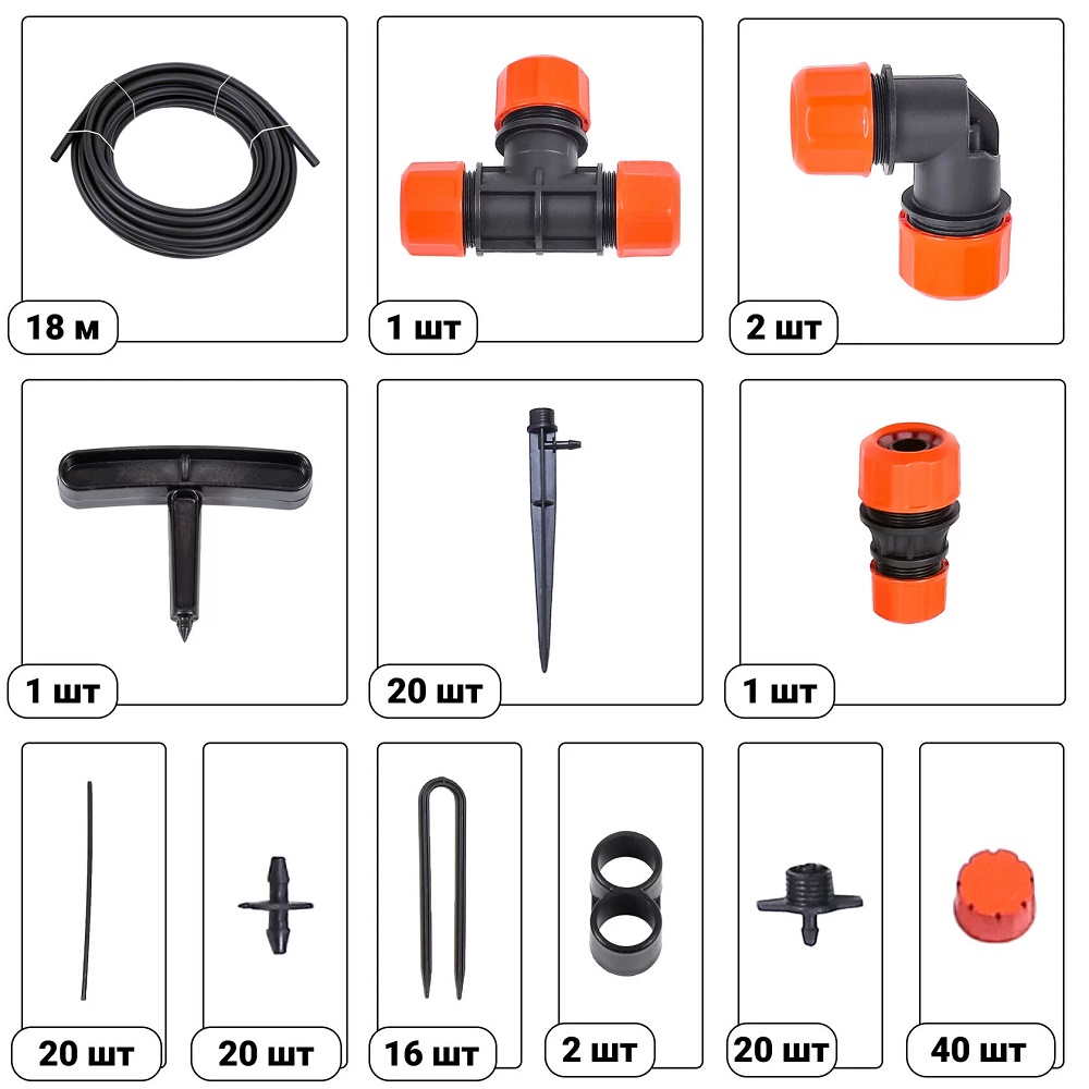 комплект рассчитан на 40 растений или на полив участка площадью 4-8 кв.м;