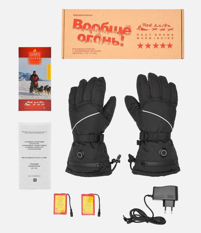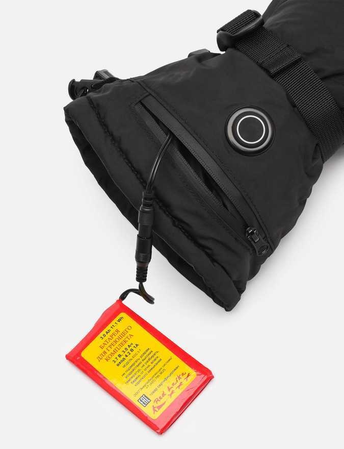 Работают на компактных аккумуляторах — для работы нагревателей используются очень тонкие и легкие внешние аккумуляторы емкостью 3000 мАч. В комплекте с перчатками идут 2 таких аккумулятора, а также специальное зарядное устройство для них. Полного заряда аккумуляторов в среднем хватает на 9 часов работы перчаток. Это зависит от температуры воздуха на улице и выбранного режима работы нагревателей.