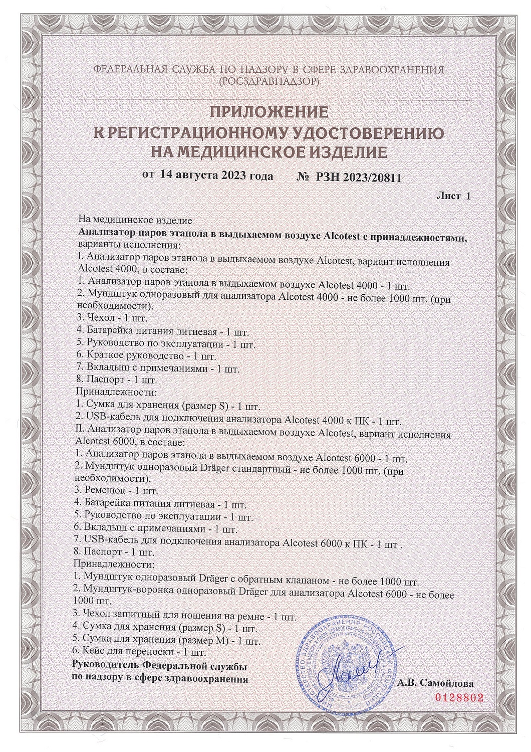 ВНИМАНИЕ! Устройство "Drager Alcotest 6000" может использоваться для проведения официального освидетельствования на алкогольное опьянение. Данный прибор внесен в Федеральный информационный фонд по обеспечению единства средств измерений, у него имеется регистрационное удостоверение.