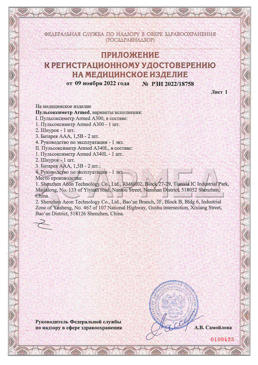 ВАЖНО! Прибор "Армед A300" зарегистрирован в Росздравнадзоре и является медицинским измерительным прибором. На него получено регистрационное удостоверение.